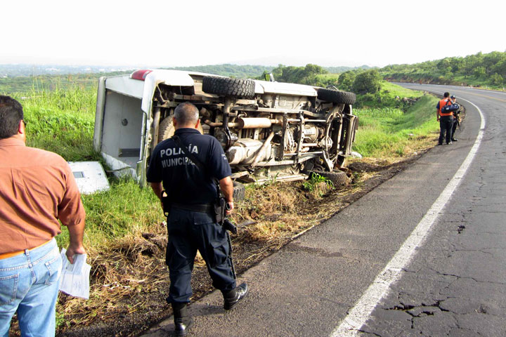 La mañana de este viernes se registró una fuerte movilización de los cuerpos de emergencia así como de los elementos de la Policía Municipal, tras registrarse la volcadura de una camioneta donde viajaban dos jaliscienses, quienes sufrieron algunos golpes en distintas partes del cuerpo.