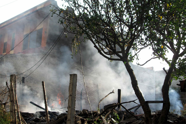 Bomberos de Jacona y del municipio de Zamora combatieron el incendio en una humilde vivienda abandonada, la cual afortunadamente estaba deshabitada, sin embargo se temía que se extendiera a otros inmuebles, al final solo daños materiales se registraron.