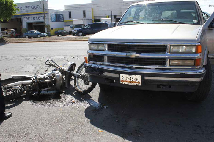 Con lesiones serias resultó un motociclista, después de ser impactado por una camioneta, cuyo chofer al parecer intentó ganarle el paso.