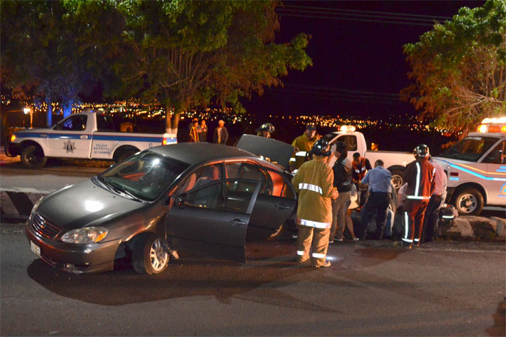 Un mexicano y tres colombianos resultaron lesionados en un accidente vial, en el cual el coche donde viajaban se subió al camellón de un puente a desnivel, tras lo cual volcó.