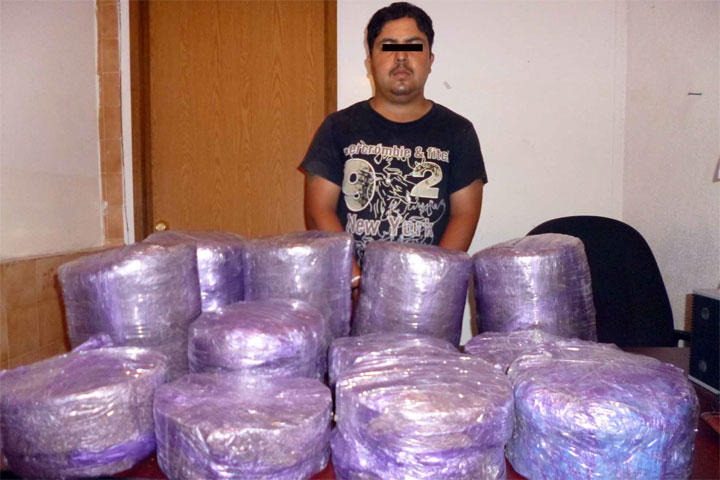 Un sujeto que presuntamente transportaba en tres maletas un cargamento de mariguana, fue detenido por efectivos ministeriales dentro de los operativos permanentes de Prevención del Delito y Seguridad en esta zona del estado.