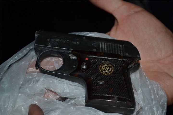 Tras una persecución, elementos de la Policía Estatal detuvieron esta noche a dos sujetos a quienes les fue asegurada un arma de fuego de juguete con la que presumiblemente se dedicaban a cometer actos ilícitos.