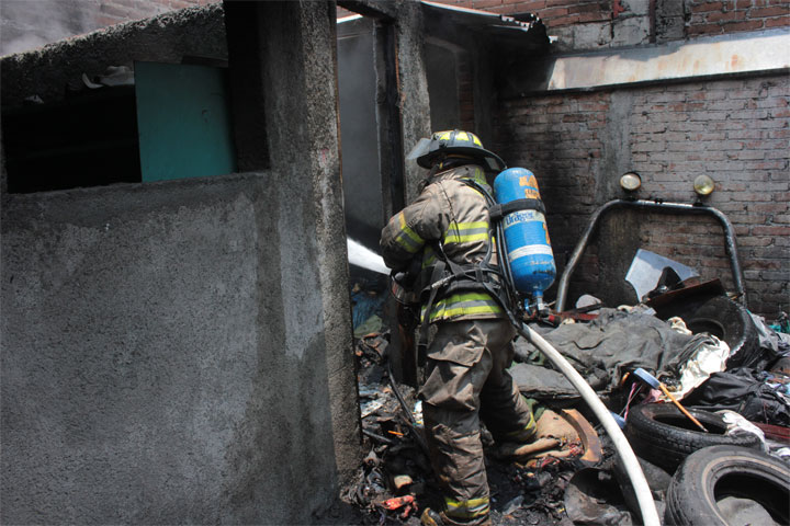 Únicamente ropa vieja y basura quedaron reducidos a carbón por las llamas de un naciente incendio dentro de una vivienda localizada en la colonia Manantiales, en Morelia.