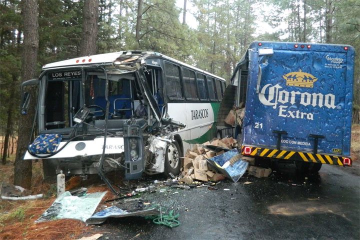 Al menos cuatro personas resultaron lesionadas la noche de este miércoles al chocar de frente un camión propiedad de una empresa cervecera y un autobús.