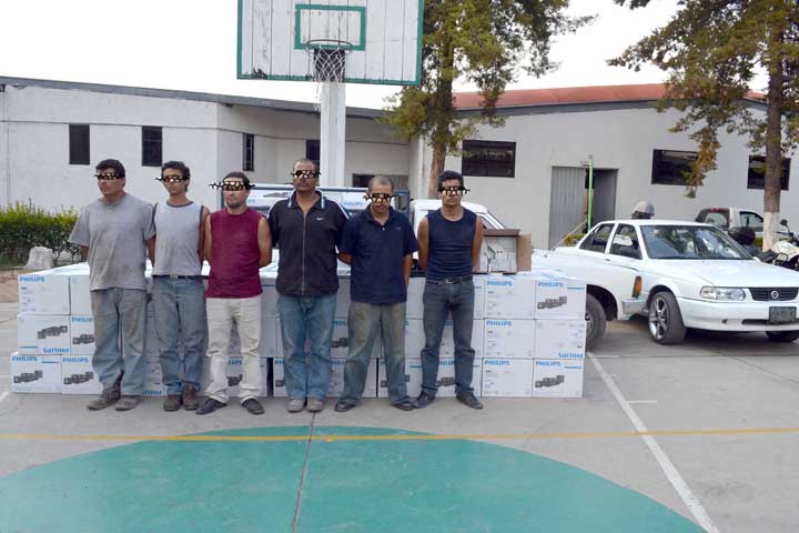 En una oportuna movilización, elementos de la Policía Ministerial (PM) capturaron a seis presuntos asaltantes de camioneros y recuperaron un tráiler que trasladaba diversos aparatos electrónicos, mismo que recién había sido hurtado a su chofer por esta banda de supuestos ladrones.