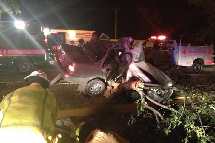 Un joven quedó gravemente lesionado entre los hierros retorcidos de su automóvil, luego de haber chocado violentamente contra un árbol localizado frente al Residencial Paraíso, en Zamora.