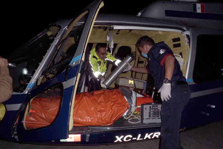 Rápidamente se activaron las alarmas y un helicóptero del gobierno del estado voló hasta la zona, donde personal de Protección Civil Estatal (PCE) atendió al paciente para enseguida trasladarlo en la aeronave a la capital... Ver más...