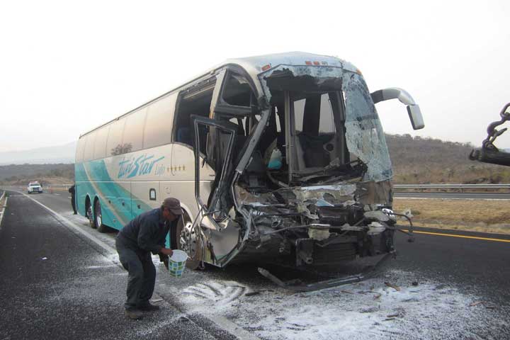 Un total de 12 heridos y cuantiosos daños materiales dejó como saldo el choque por alcance de un autobús de pasajeros contra un tráiler, debido a que al parecer el chofer de esta unidad se quedó dormido, cuando circulaba a exceso de velocidad.