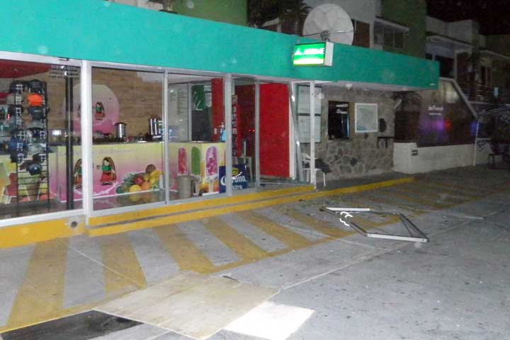 Un grupo de ingenuos ladrones trataron de robar un cajero automático de una gasolinería, para lo cual lo jalaron con un grueso cable de acero que engancharon a una camioneta, pero en su intento destrozaron dicha máquina y también averiaron el vehículo, mismo que abandonaron metros adelante en medio de su huída.