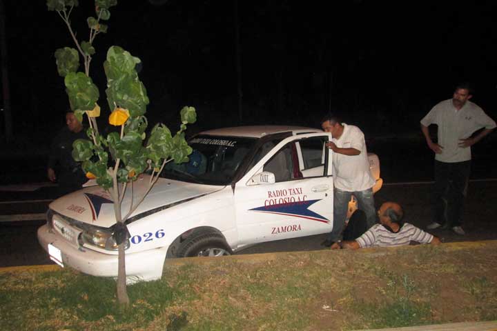 El conductor de un taxi y su pasajera resultaron levemente heridos al impactarse contra el machuelo y un árbol, debido presuntamente al exceso de velocidad en el que viajaban, según informaron las autoridades.