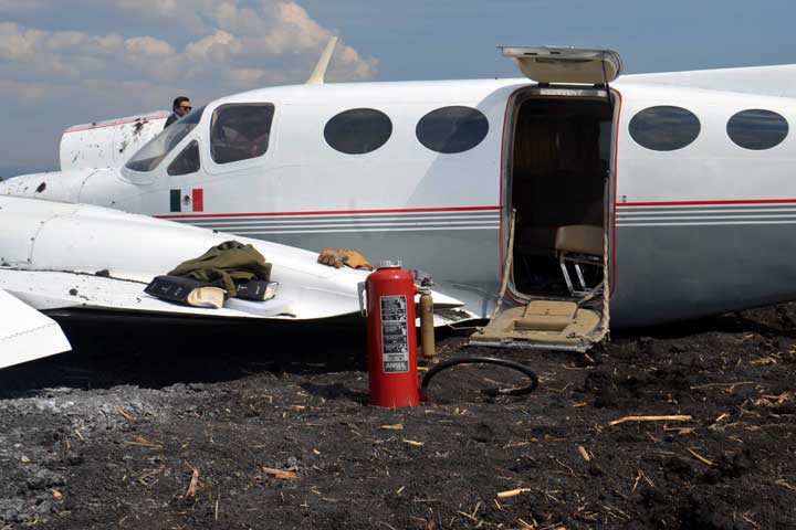Una falla en un motor de una de las alas, ocasionó el aterrizaje forzoso de una avioneta el medio día de este sábado en un terreno agrícola localizado a un costado del aeropuerto internacional Francisco J. Mújica, dejando un saldo de seis personas lesionadas, por fortuna no de gravedad.