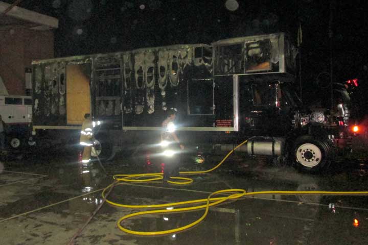Una falla en una planta de luz terminó con el incendió de un tractocamión particular, que presta sus servicios a una televisora a nivel nacional, que transmitirá el programa "Sábados de Corona", lo que provocó la movilización de los cuerpos de Bomberos Municipales, así como de paramédicos de distintas corporaciones.