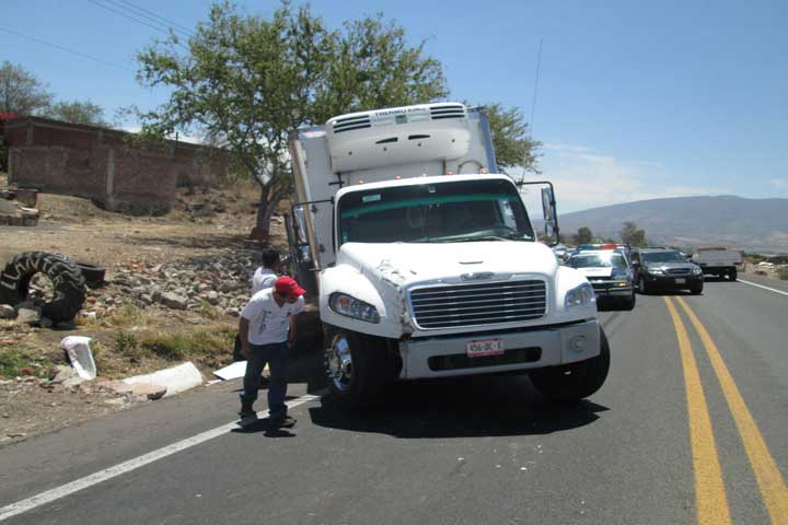 Únicamente daños materiales dejó el choque entre un tractocamión y una camioneta sobre el Libramiento Norte de esta municipalidad, justo a la altura de la colonia Loma Bonita.