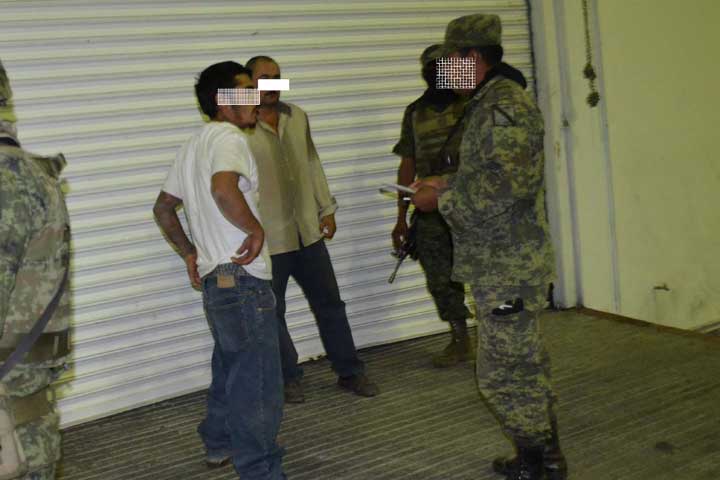 Mediante una denuncia ciudadana, elementos del Ejército Mexicano arrestaron a dos presuntos delincuentes, quienes supuestamente traían consigo varios kilos de marihuana y dos armas.