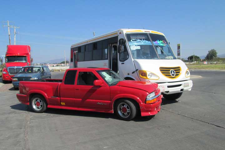 El choque entre una camioneta y un microbús de la ruta amarilla provocó la movilización de los cuerpos de auxilio y de Tránsito, por fortuna en este incidente sólo hubo daños materiales, sin personas lesionadas de consideración, como una mujer que por el susto presentaba crisis nerviosa.