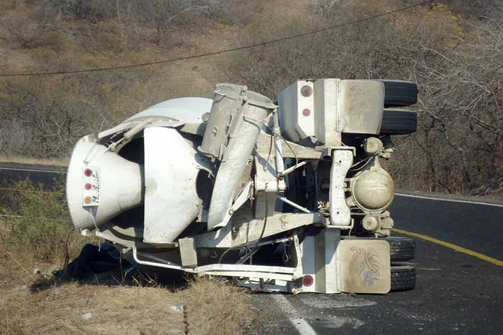 Un tráiler - revolvedora que trasladaba varias toneladas de cemento, volcó al tomar una curva y mantuvo varias horas cerrada parcialmente la carretera Huetamo-San Lucas, en este municipio.