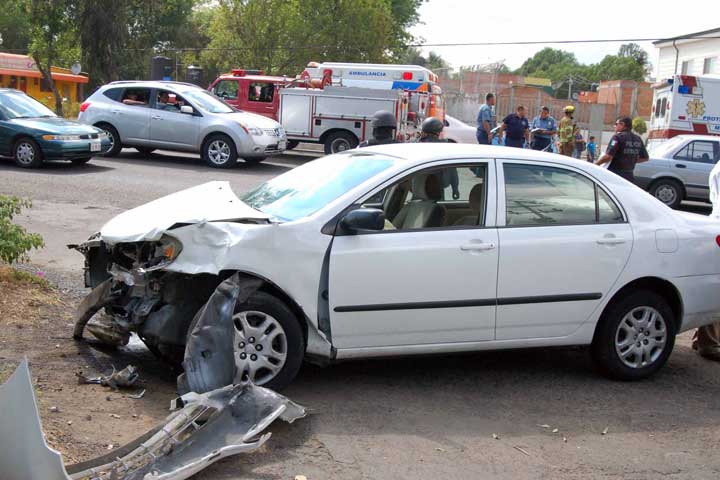 Una mujer y su nieto resultaron lesionados, cuando el auto que la fémina conducía chocó contra una ambulancia al salir intempestivamente de una calle para incorporarse a la Calzada La Huerta, en el fraccionamiento Xangari, de Morelia.