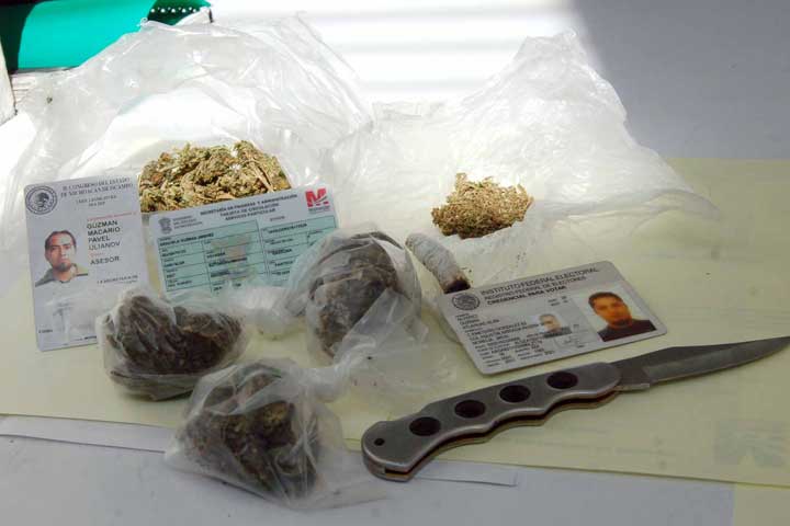 Tres sujetos fueron detenidos por la Policía Estatal Preventiva (PEP), a quienes les decomisaron varios gramos de marihuana, siendo trasladados al Centro de Operaciones Estratégicas (COE), de Morelia. Uno de ellos dijo ser asesor en el Congreso del Estado.