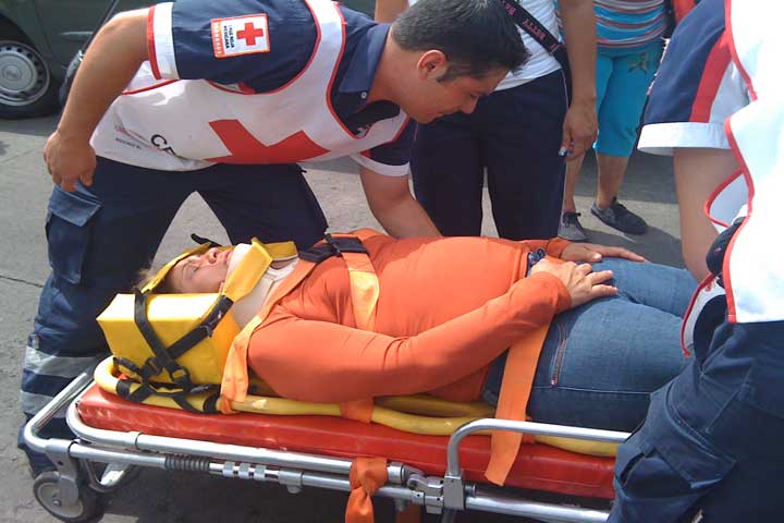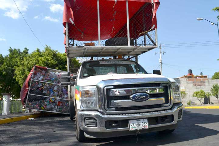 Una mujer resultó lesionada al ser golpeada por la jaula de una camioneta recolectora de plásticos, misma que volcó cuando dicha unidad trataba de dar una vuelta a la izquierda.