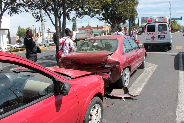 Por fortuna solo daños materiales dejo como saldo el choque por alcance entre dos vehículos, en libramiento independencia de Morelia, al medio día de este domingo, provocado presuntamente por una tercer unidad que se dio a la fuga con rumbo desconocido.