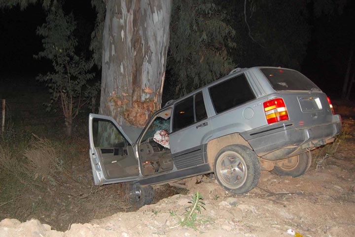 Un chofer sufrió múltiples golpes tras perder el control de su vehículo, el cual se impactó contra un árbol localizado a la orilla del camino pavimentado que lleva a Villa Madero.