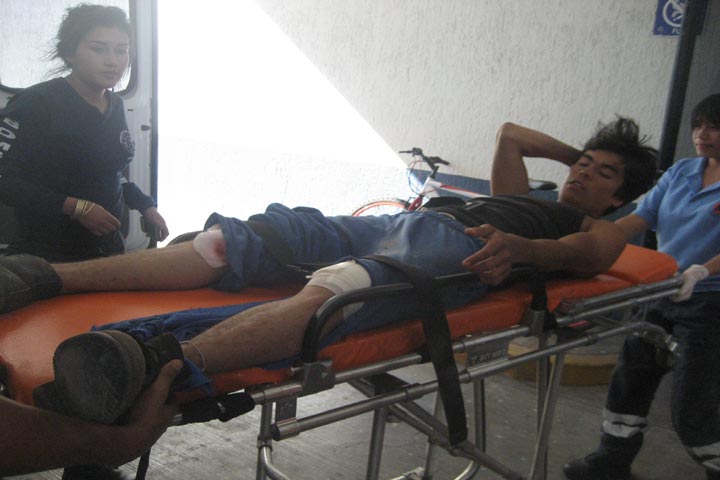 Un jovencito se fracturó un pie y además sufrió diversas contusiones corporales, luego de que cayó de una altura aproximada de tres metros, pues había subido a la azotea de un domicilio para bajar un balón de futbol.