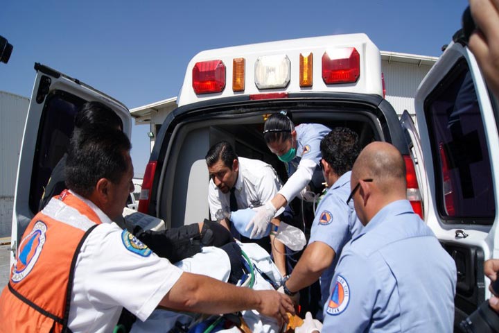 Dos paramédicos con lesiones menores y cuantiosos daños materiales dejó un choque entre un auto y una ambulancia, mismo que sucedió porque al parecer el chofer del vehículo particular manejaba ebrio.