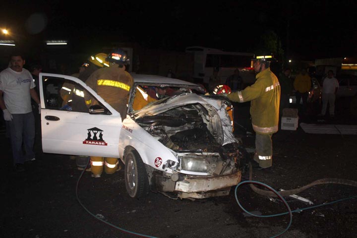 Dos sujetos salvaron sus vidas de milagro, luego que tras haber salido de un bar quedaran prensados en el vehículo en el que viajaban, ya que se impactaron de frente contra un camión la media noche de este miércoles en la carretera libre a Patzcuaro.