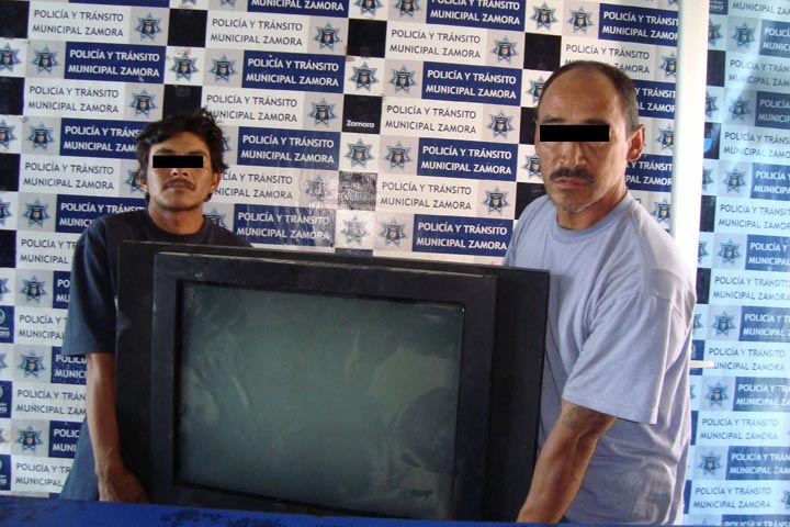 Dos presuntos ladrones fueron detenidos por elementos de la DSP tras apoderarse de un televisor de un domicilio de la colonia El Vergel, los amantes de lo ajeno trataron de darse a la fuga escondiéndose entre los matorrales a un costado del Hospital General para evitar la acción de la justicia.