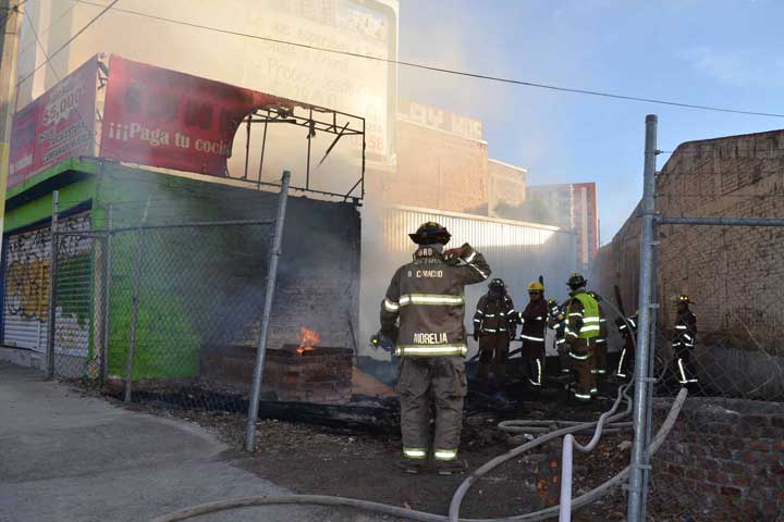 La mañana de este lunes, se registró un incendio en un lote propiedad de una empresa constructora, en el fraccionamiento Galaxia, de Tarímbaro, a raíz de que un empleado de vigilancia hizo una quema de basura, tras la cual las llamas alcanzaron el material inflamable que había en el lugar y amenazaban con llegar a un almacén.