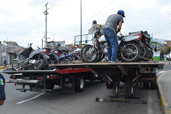Como parte de la estrategia municipal Morelia Interinstitucional implementada para abatir los índices delictivos, elementos de Tránsito del Estado lograron asegurar 39 motocicletas y un automóvil, por falta de placas o tarjeta de circulación.