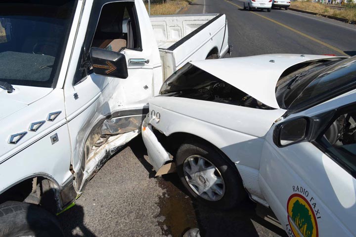 Daños materiales y dos lesionados leves dejó como resultado un choque entre un taxi y una camioneta, sucedido en la carretera Morelia-Zinapécuaro, en Tarímbaro.