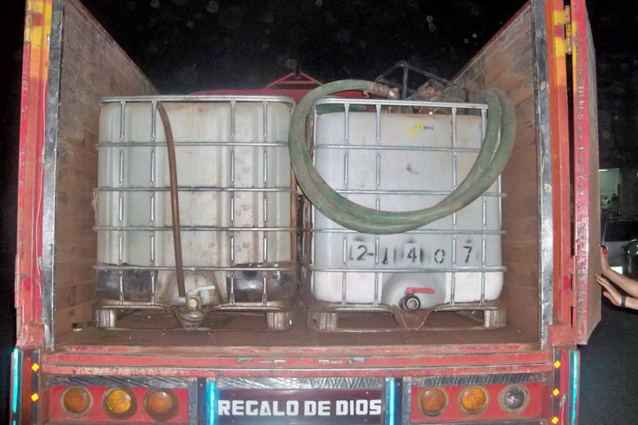 Dos sujetos fueron detenidos por elementos de la 43 Zona Militar, al ser sorprendidos cuando trasladaban 4 mil litros de diesel, al parecer robado, en una camioneta tipo redilas.