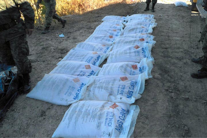 NOTICIAS 18/01/2013Encuentra la Sedena más de 400 kilos de explosivos en Coalcomán
