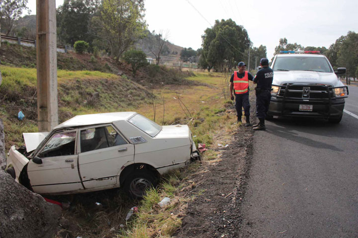 El exceso de velocidad con el que circulaba un automovilista ocasionó que él y sus dos acompañantes resultaran severamente lesionados, luego de que se estrellaron contra un mástil de acero ubicado a la orilla de la carretera Morelia - Pátzcuaro.