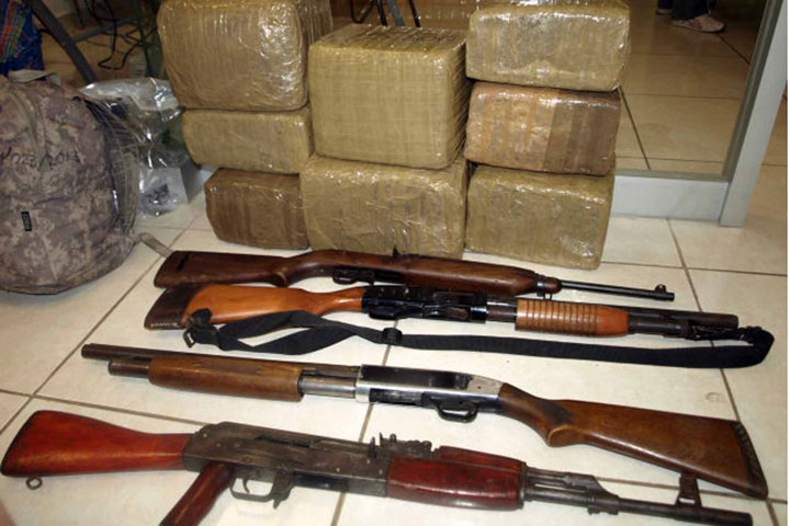 Un considerable cargamento de droga y armas de fuego se le aseguró a cuatro presuntos integrantes del crimen organizado, quienes fueron aprehendidos por el personal militar sobre el camino Opopeo-Santa Juana, correspondiente a Salvador Escalante.