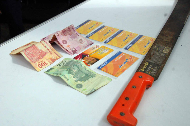Un sujeto que asaltó una tienda Oxxo con un machete, de la cual se robó varias tarjetas de crédito para celular y dinero en efectivo, fue arrestado por la Policía Estatal Preventiva, cuando trataba de darse a la fuga al subirse a una combi del servicio público.