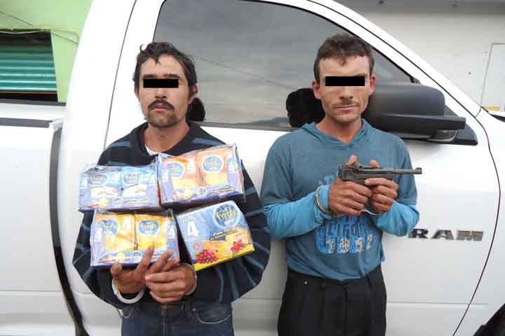 Dos presuntos asaltantes de choferes repartidores de mercancías diversas fueron capturados en una rápida movilización de la Policía Ministerial, de Villa Madero, esto después de que atracaran al conductor de un auto particular y a otro de una compañía de dulces, en una brecha localizada en este municipio.