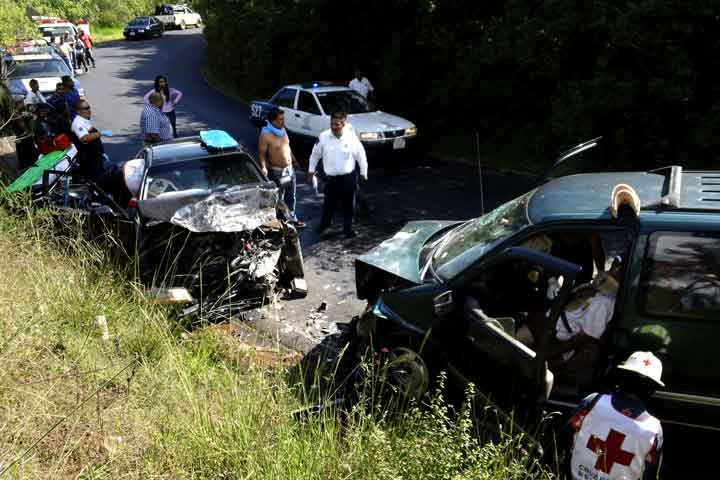 El dirigente de la populosa colonia La Cedrera en Uruapan, sufrió lesiones de consideración, al quedar prensado contra el volante de la camioneta que conducía e impactarse de frente contra un automóvil, la tarde de este día, en la carretera estatal a Los Reyes, en el tramo de San Lorenzo-Las Cocinas. Cuatro personas más resultaron lesionadas en el mismo accidente.