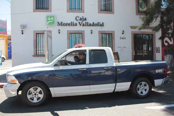 En posesión de armas de fuego cortas, tres malandrines asaltaron la sucursal de la Caja Morelia Valladolid, ubicada sobre la avenida Madero Oriente, a la altura de la colonia Casco de Quiroga.
