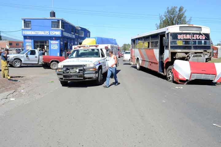 Presuntamente por intentar dar una vuelta prohibida, la camioneta perteneciente a la Escuela Normal Rural "Vasco de Quiroga", fue impactada por un camión torton, resultando lesionados levemente tres estudiantes, mismos que fueron valorados medicamente por personal de Protección Civil (PC).