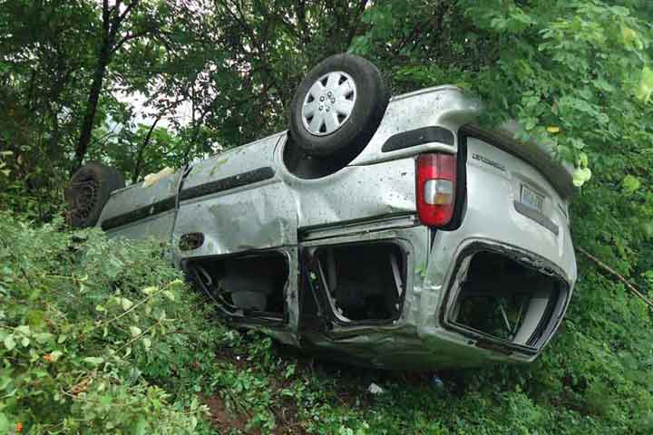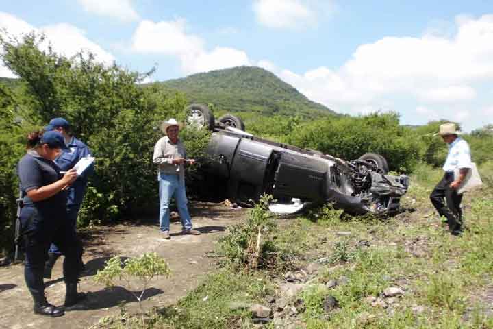 Dos hombres que iban ebrios se salvaron de morir, a pesar de que su camioneta quedó completamente destrozada al volcar a exceso de velocidad, sobre la carretera El Nogal-Cojumatlán.