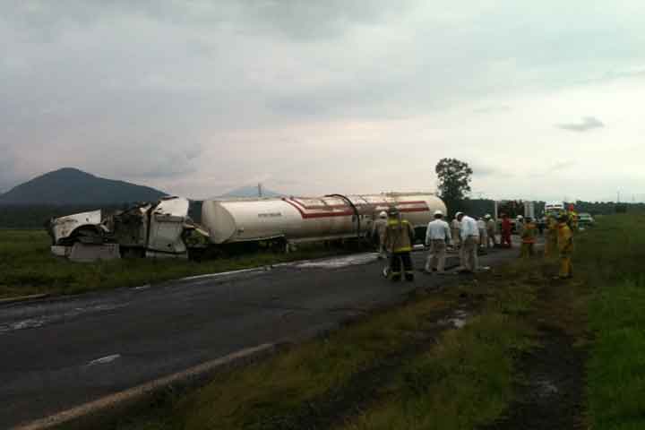 Intensa movilización de los cuerpos de auxilio y de bomberos de la región, se registró minutos después de que se volcó una pipa cargada con más de 33 mil litros de gasolina, cuyo conductor sufrió algunos golpes en el cuerpo, tras el accidente.