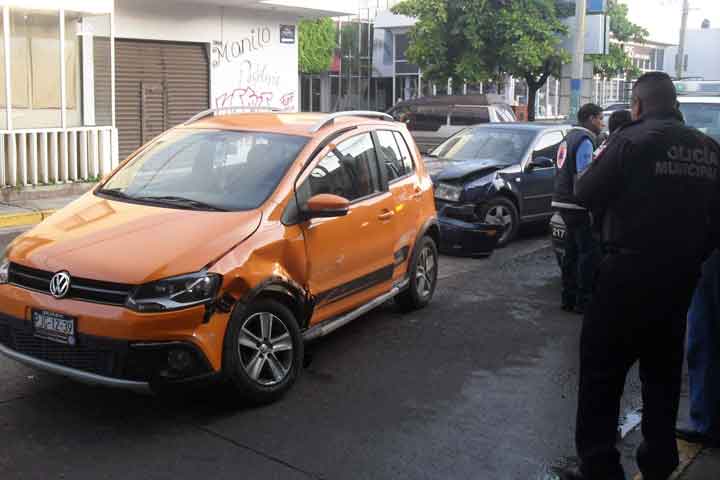Daños materiales por varios miles de pesos fue el saldo del choque entre dos vehículos, lo que causo el bloqueo parcial de la calle Pino Suárez esquina con la calle Amado Nervo de Zamora.