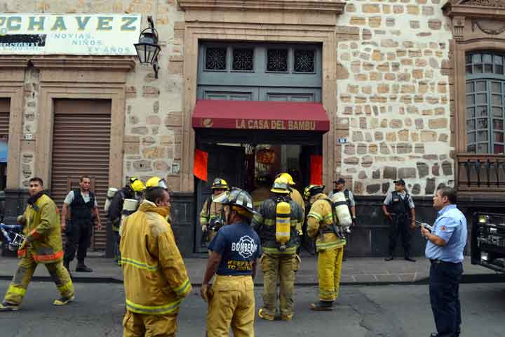 El incendio en una lámina del techo de un restaurant de comida china ubicado en el centro de Morelia, provocó la movilización de los Bomberos y el susto entre los vecinos que temían una explosión que pudiera extender las llamas a sus viviendas.
