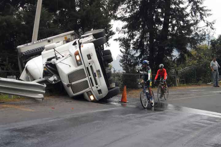 Los conductores de dos tráileres resultaron lesionados, luego de que sus unidades volcaron, uno de ellos sobre la carretera libre a Lombardía y otro sobre la rúa a Paracho. El primero iba cargado de aceite de cocina y el otro, de carnes frías.