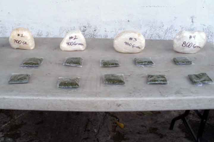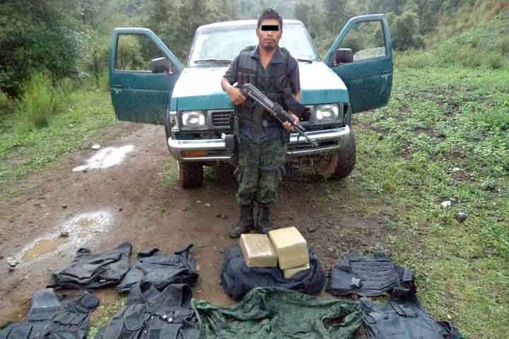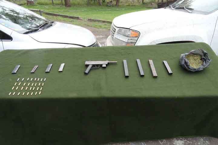 A este individuo se le aseguraron varios kilos de mota, una arma larga, una pistola, varios cargadores y cartuchos, y una camioneta que utilizaba aparentemente para realizar sus actividades ilícitas.