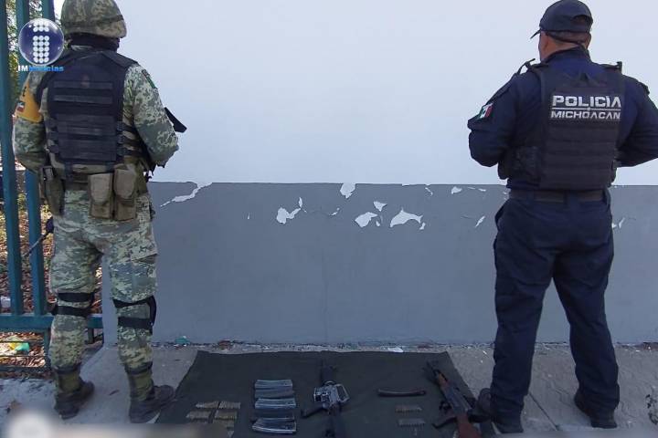 Durante tareas de vigilancia en dicho lugar, elementos de la Policía Michoacán y del Ejército Mexicano localizaron entre la maleza de un predio dos ar... Ver más...