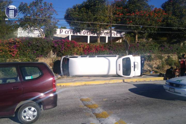 La volcadura de una combi de la ruta Zitácuaro-Macho de Agua dejó como saldo tres personas heridas frente al panteón Jardines, en la cabecera municipal.