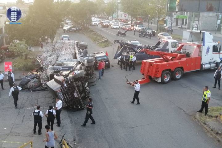 Un tráiler que transportaba material reciclable volcó cuando circulaba sobre la avenida Madero Poniente, en la ciudad de Morelia. Un ocupante de la unidad sufrió leves contusiones, trascendió en la cobertura de la noticia.